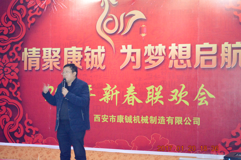 鞭炮聲聲辭舊歲,金雞報(bào)曉迎新春!2017年1月20日,農(nóng)歷小年夜,西安康鋮公司全體成員及特邀嘉賓一起歡聚東興莊園,在一片喜慶熱烈的氛圍中迎來了“情聚康鋮,為夢(mèng)想啟航”-西安康鋮2017年度新春年會(huì)。2016年是公司具有歷史意義的一年,也是康鋮人奮力拼搏的一年,這一年公司實(shí)力與形象均有了喜人的改變,這是全體康鋮人的驕傲。